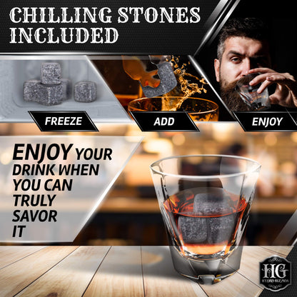 - Handmade Lead-Free Glass Decanter is well made from 110% safe lead-free crystal glass which is heavy, thick and sturby. HG’s luxury whiskey glass set comes with a perfect package Gift Box