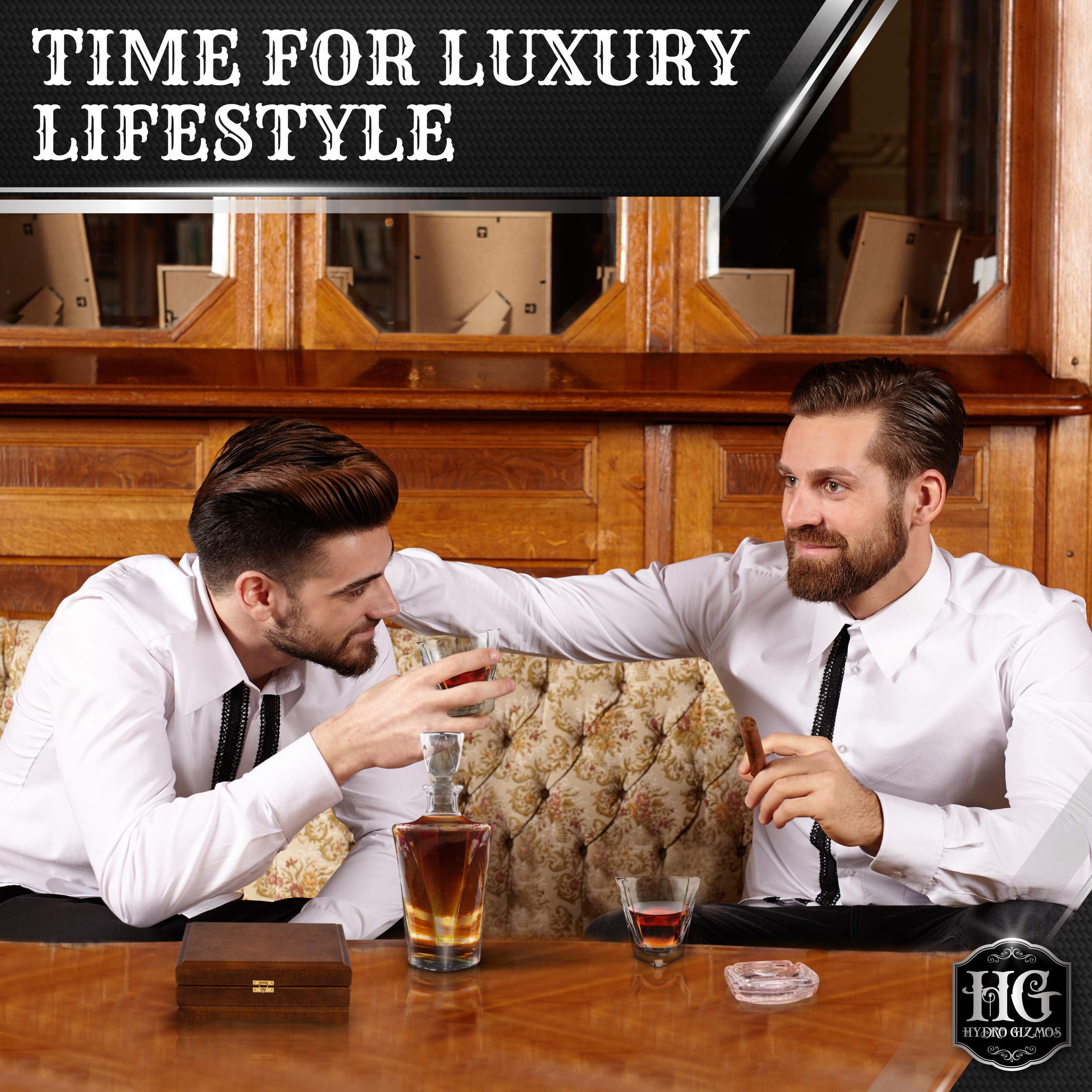 - Time for a toast – In the mood for a big boy beverage? Pour up and luxuriate in with HG’s luxury whiskey glass set. The eye catching glass decanter is ideal for whiskey, scotch, bourbon, rum