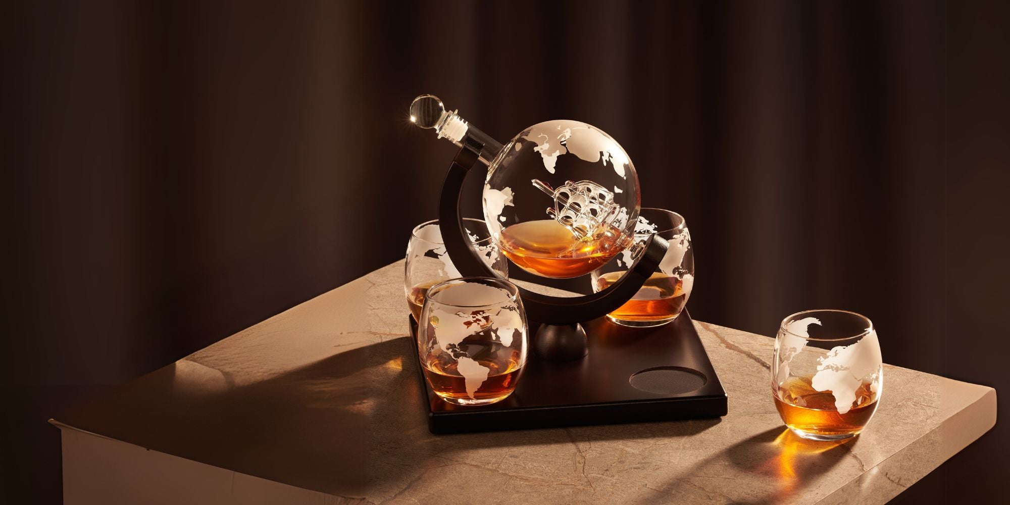 Make every pour an experience. This handcrafted globe decanter with matching glasses is the ultimate gift for whiskey lovers who appreciate elegance, detail, and bold design.